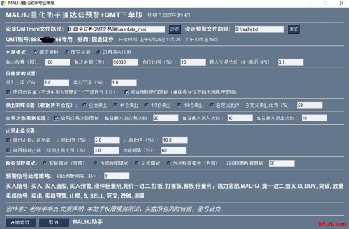 MALHJ量化助手让自动交易更简单,支持同花顺动态和通达信预警
